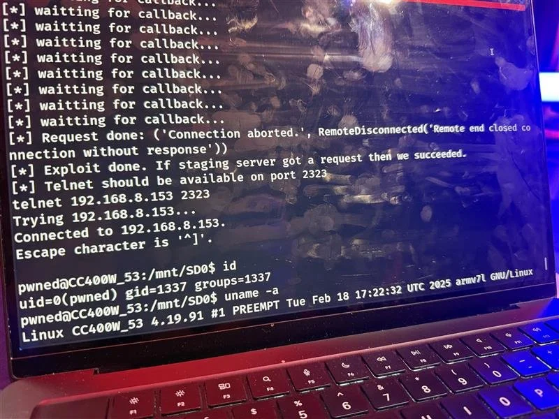 COLLISION - Enrique Castillo (@hyprdude), McCaulay Hudson (@_mccaulay), Sina Kheirkhah (@SinSinology) of Summoning Team (@SummoningTeam) successfully exploited the Synology CC400W camera, but the bug they used was known to the vendor. They still earn $15,000 and 1.5 Master of Pwn points.