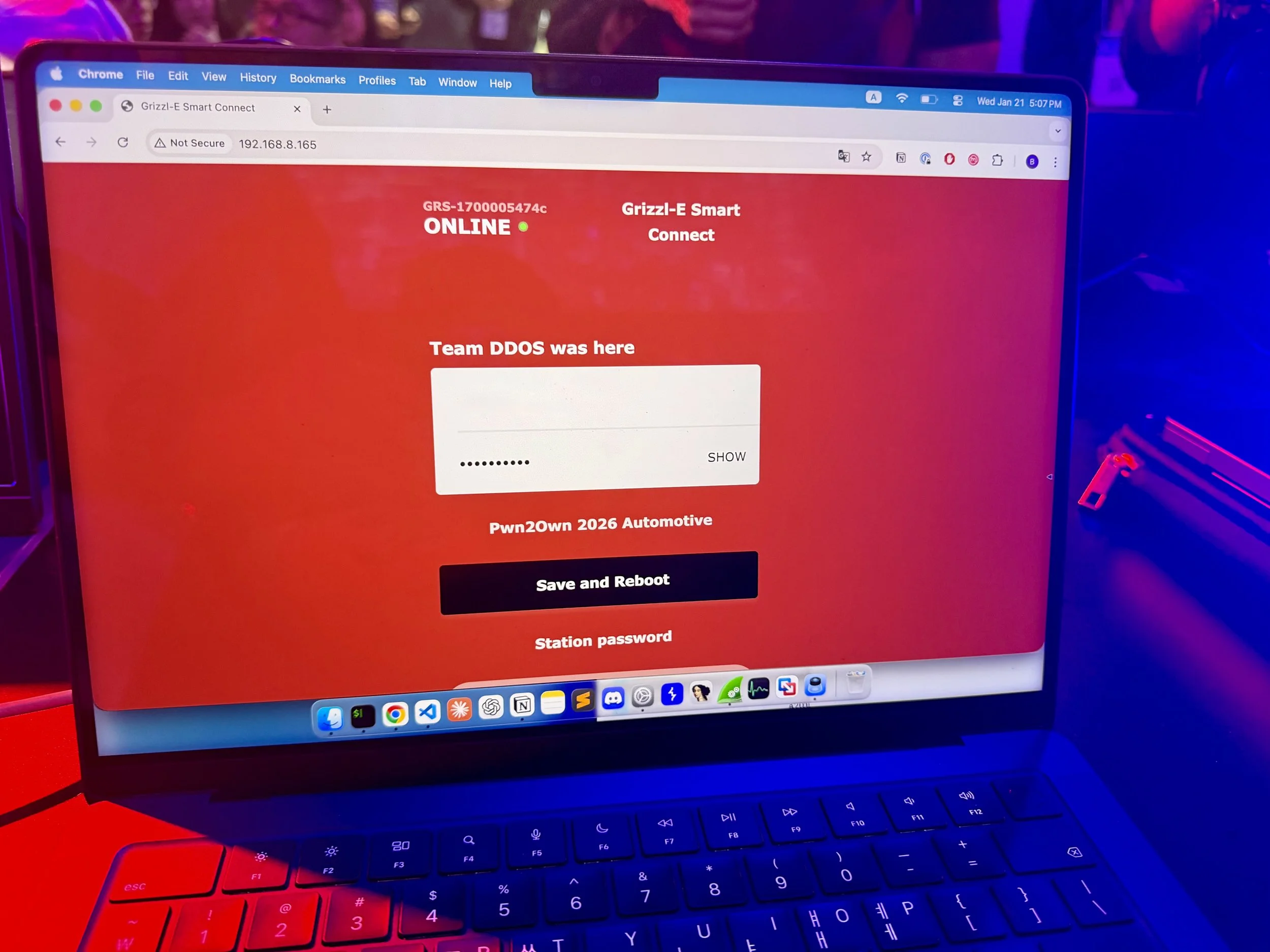 SUCCESS - Taejin Kim (@tae3pwn), Junsu Yeo (@junactually), Sunmin Park (@sunminpark4503), Sungmin Son (@_ssm98), and Hoseok Lee of SKShieldus (@EQSTLab) of 299 exploited a hardcoded credential (CWE-798) to achieve code execution via CWE-494 on the Grizzl-E Smart 40A, earning $40,000 USD and 4 Master of Pwn points.